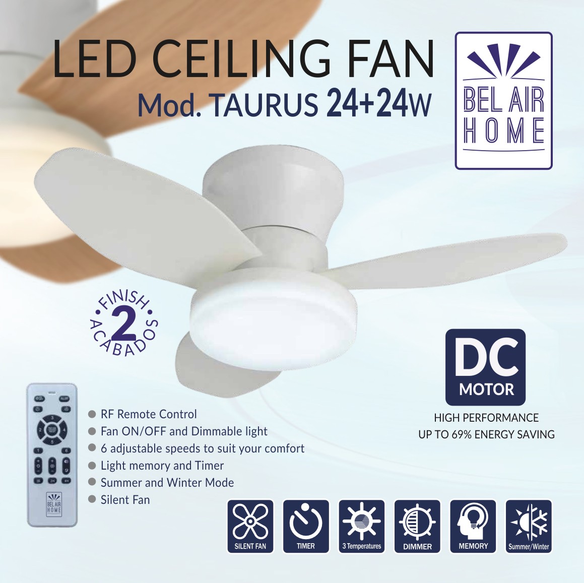 • 🎨 Combina funcionalidad y estilo con el ventilador de techo con luz BEL AIR HOME; su motor DC silencioso proporciona un flujo de aire constante y eficiente, mientras que su diseño garantiza durabilidad.