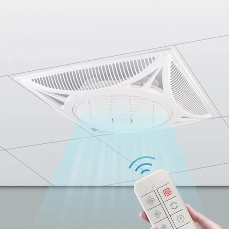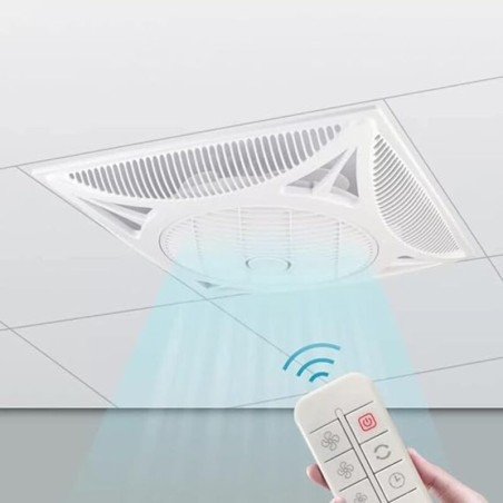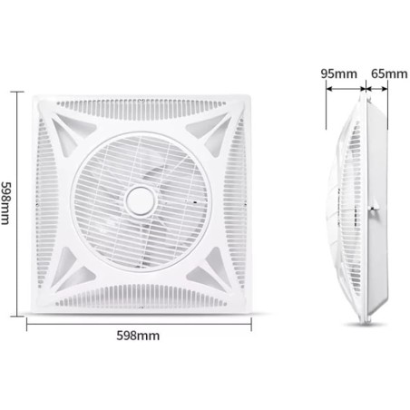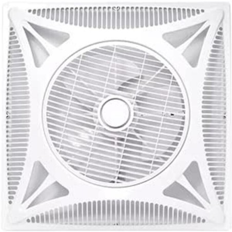 - Ventilador de techo moderno blanco, ideal para oficinas y comercios con techos desmontables, medida 59,5x59,5 cm