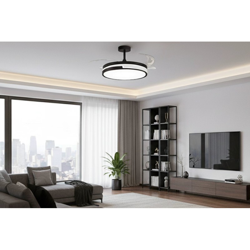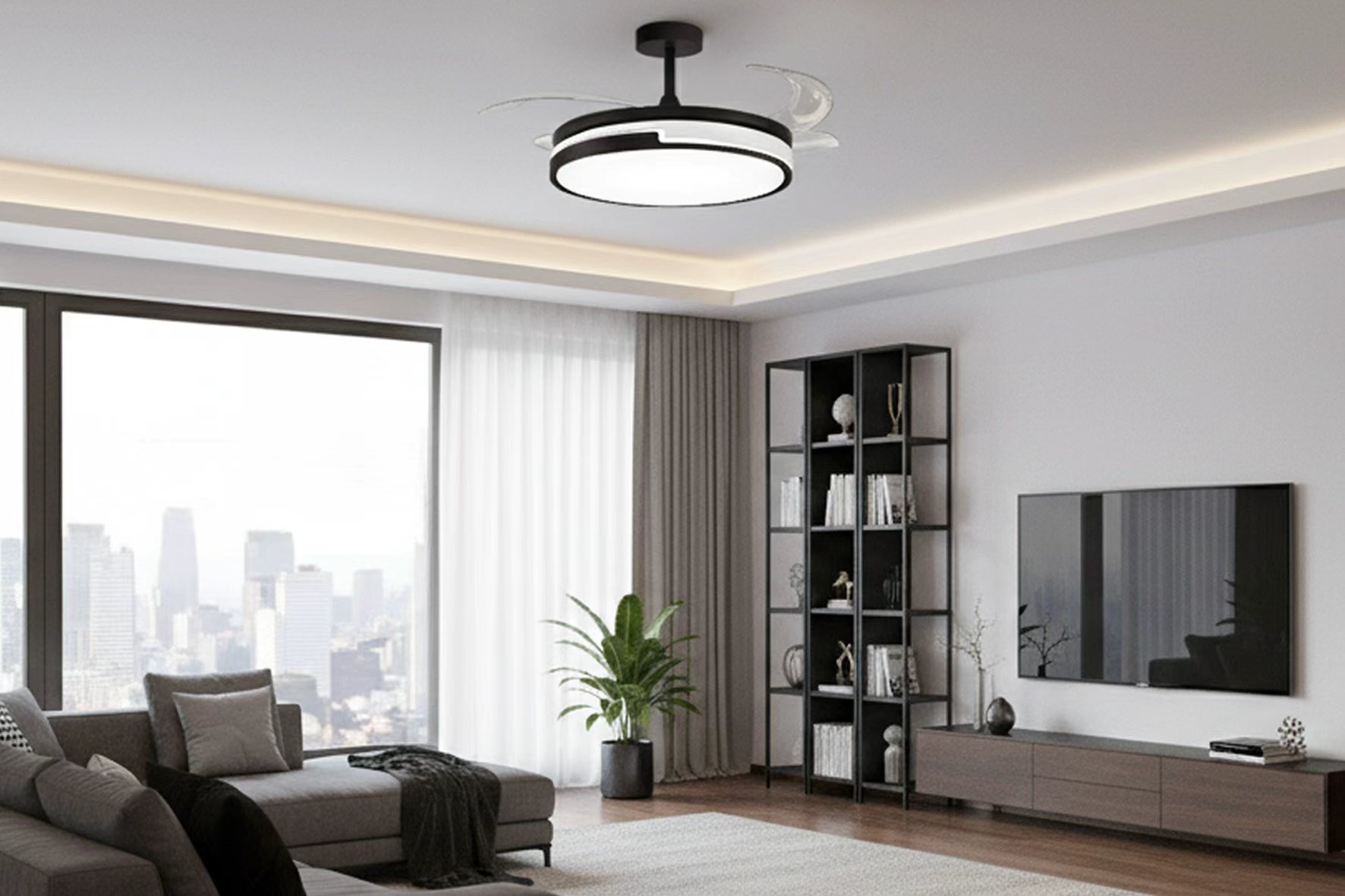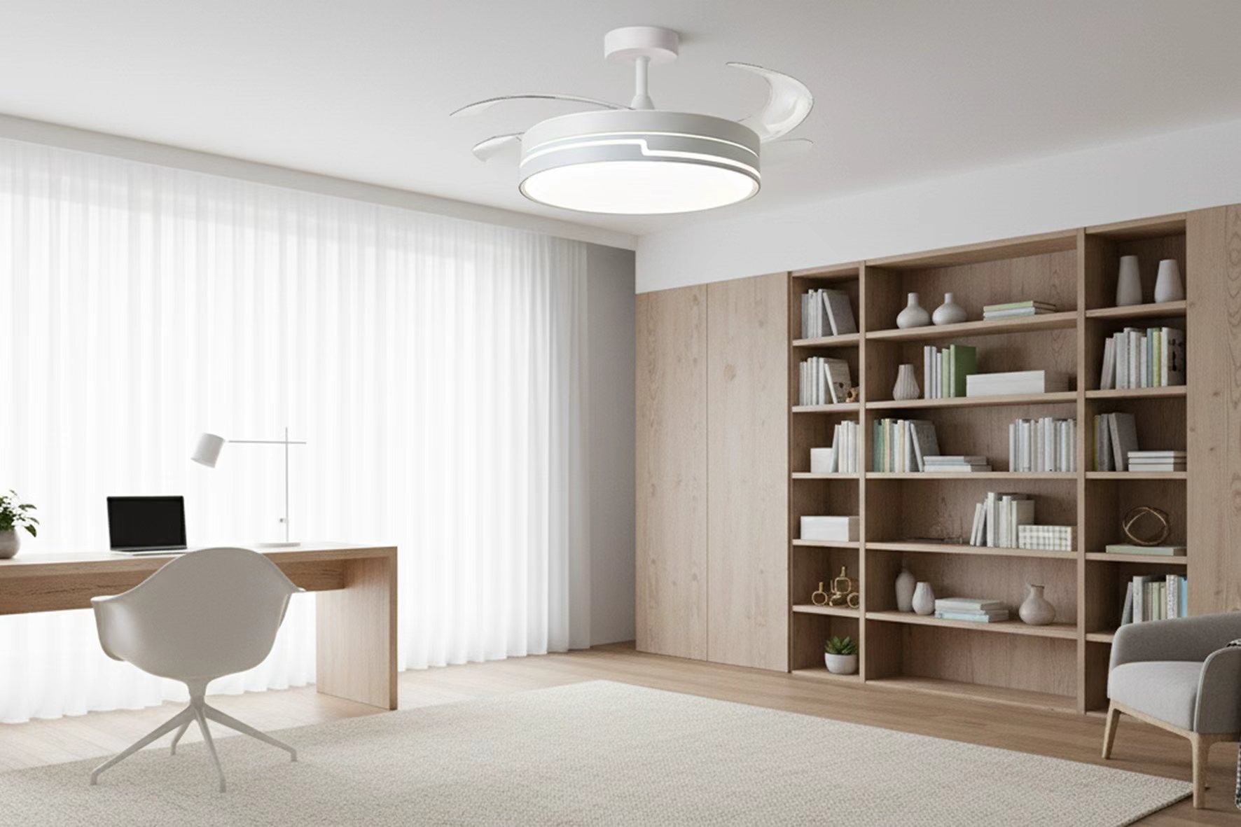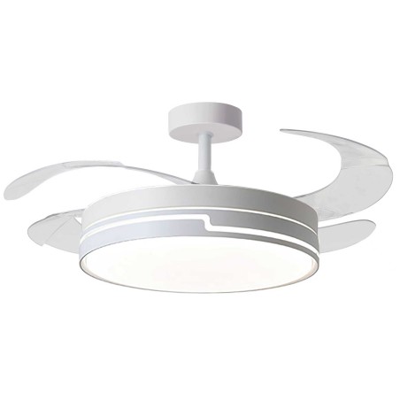 Aspas desplegables y diseño moderno: Este ventilador de techo cuenta con aspas desplegables que se ocultan cuando no están en uso, ofreciendo un diseño elegante y minimalista en color blanco que se adapta a cualquier estilo de decoración.