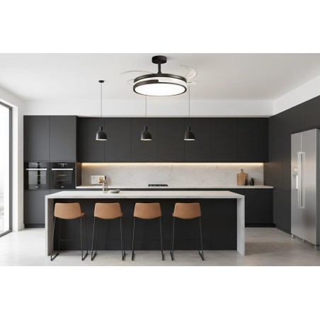 Este ventilador cuenta con un motor DC de bajo consumo y aspas desplegables, lo que lo convierte en una opción ideal para espacios reducidos o con decoración minimalista. Una de las características destacadas del ventilador ROBIN es su sistema de iluminación LED de 36W, que ofrece tres temperaturas de color diferentes (3000K, 4000K y 6500K) para adaptarse a tus necesidades y preferencias. Además, gracias a su mando a distancia incluido, podrás controlar todas las funciones del ventilador de manera cómoda y sencilla desde cualquier lugar de la habitación. El ventilador ROBIN es perfecto para cualquier estancia de tu hogar, desde el salón hasta el dormitorio. Gracias a su diseño moderno y discreto en color blanco, encajará a la perfección con cualquier estilo de decoración.